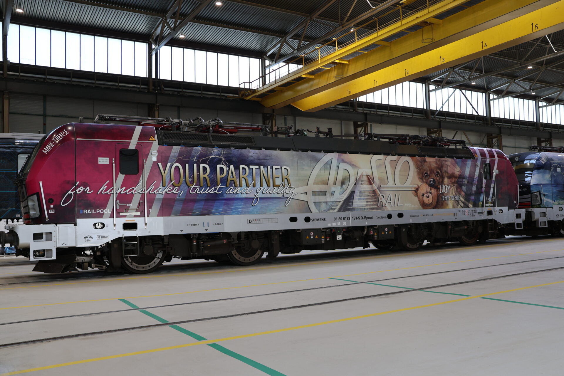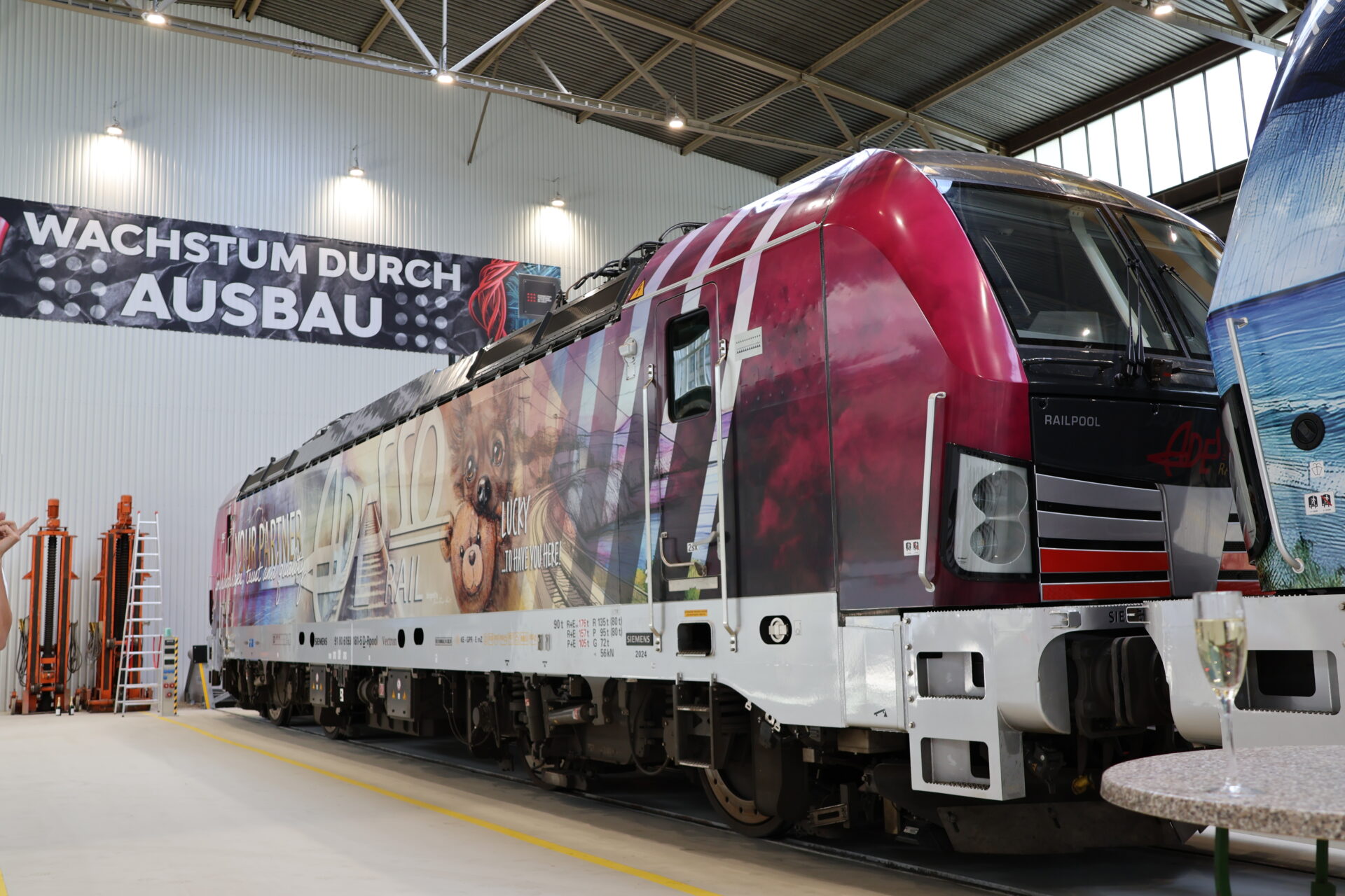 Ein besonderes Highlight war die Ankunft der ersten beiden Vectron-A22 (IT, AT, DE), die von Railpool gemietet und nun offiziell in Halle 3 der DPB Rail Technical Service GmbH in Krieglach in Empfang genommen wurden. Im Rahmen einer feierlichen Zeremonie wurden die Loks unter der Moderation der Adesso-Geschäftsführerin Patrizia Langer traditionell mit Sekt getauft.